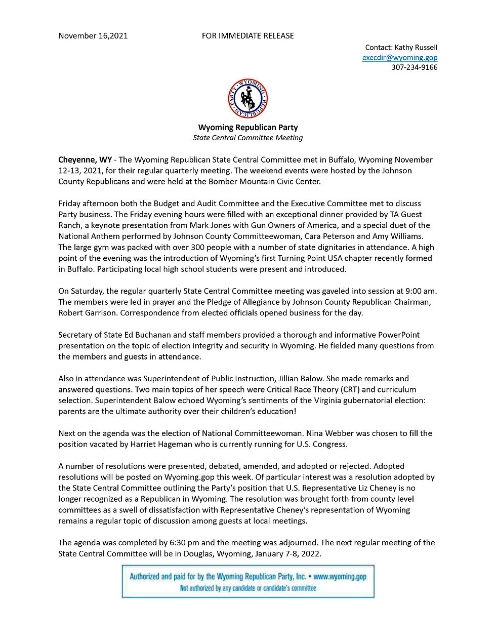 Press Release: Wyoming GOP Applauds RNC Intervention To Defend Wyoming Proof-of-Citizenship Voting Law